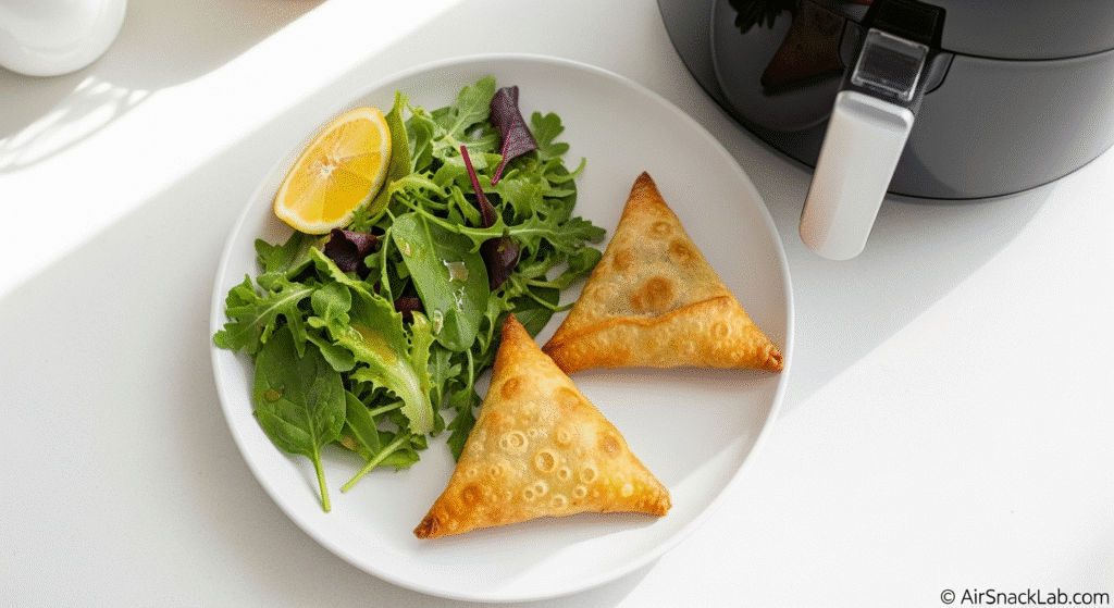 Modern air fryer samosa recipes fit beautifully into balanced diets — especially when made with whole-wheat wrappers or olive oil spray.