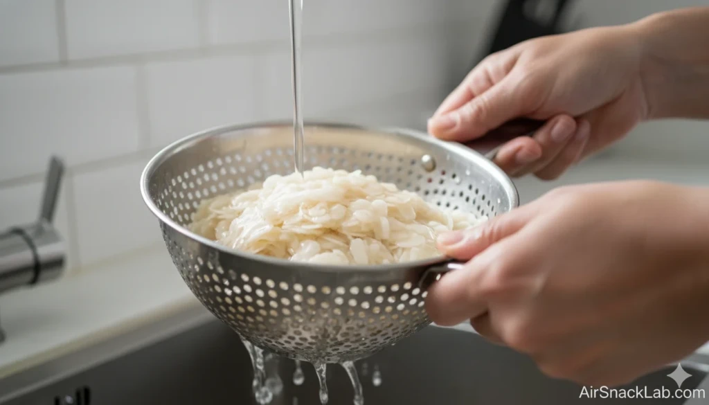 - Don’t oversoak – Just rinse and rest. Soaking in water makes it mushy.